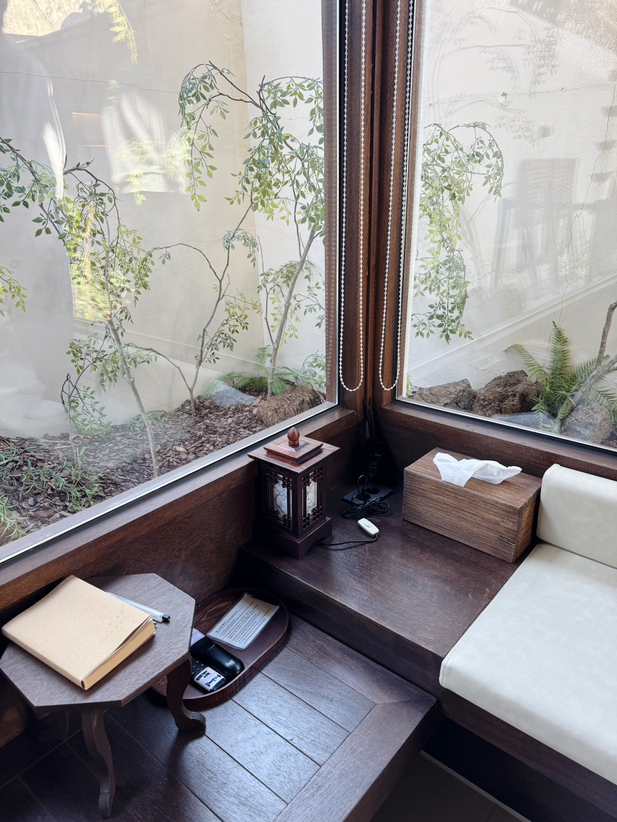 이번 여행 중 한옥숙소를 꼭 넣고 싶었는데, 제일 중요하게 생각한 포인트는 한옥을 바라보는 뷰보다, 한옥에서 바라보는 뷰를 중요하게 생각했습니다. 한옥에 앉아있는 시간이 더 많을 듯해서입니다:)