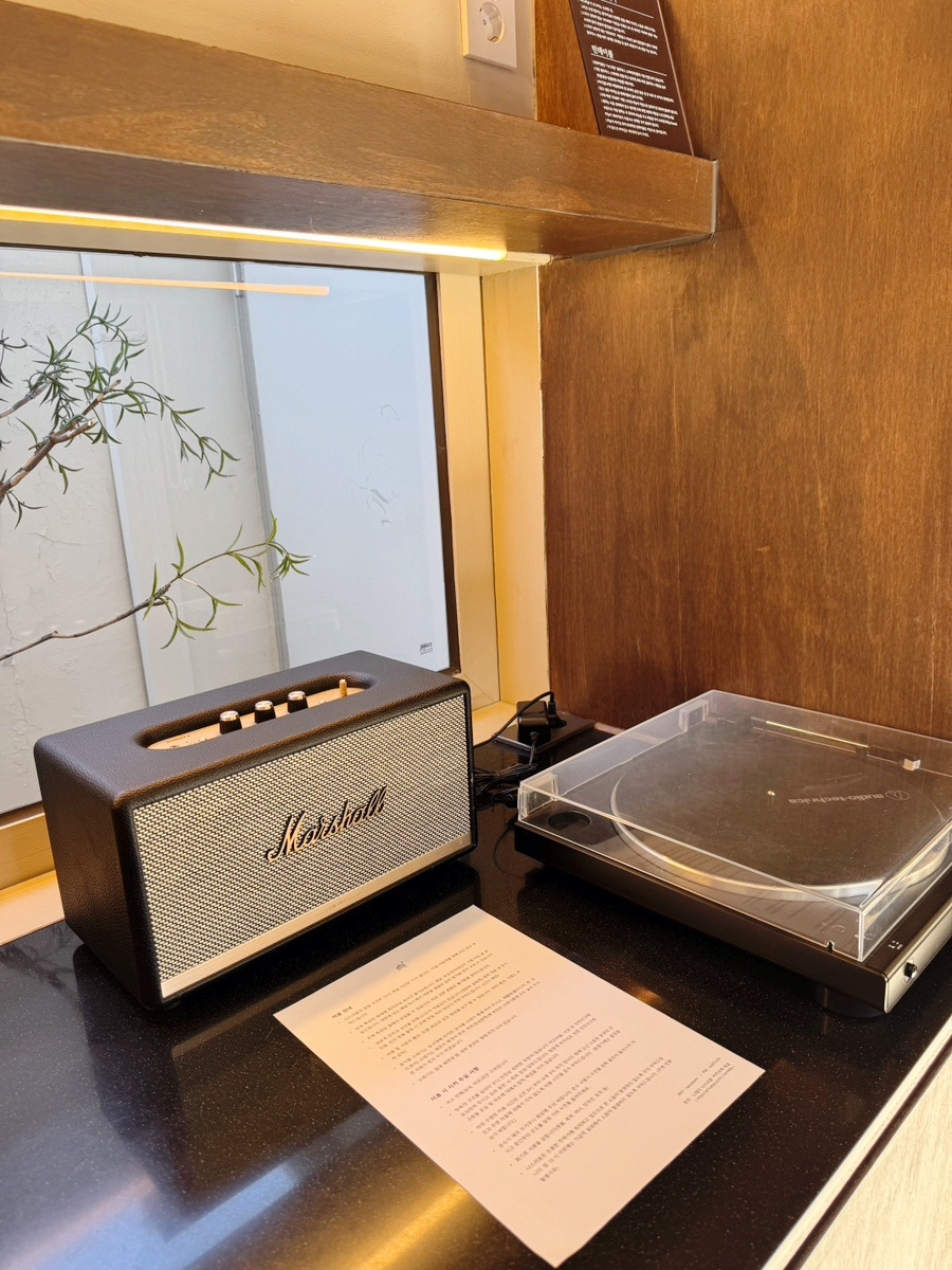 마샬 스피커와 LP플레이어도 있어, LP판으로 음악도 들어 봅니다:)