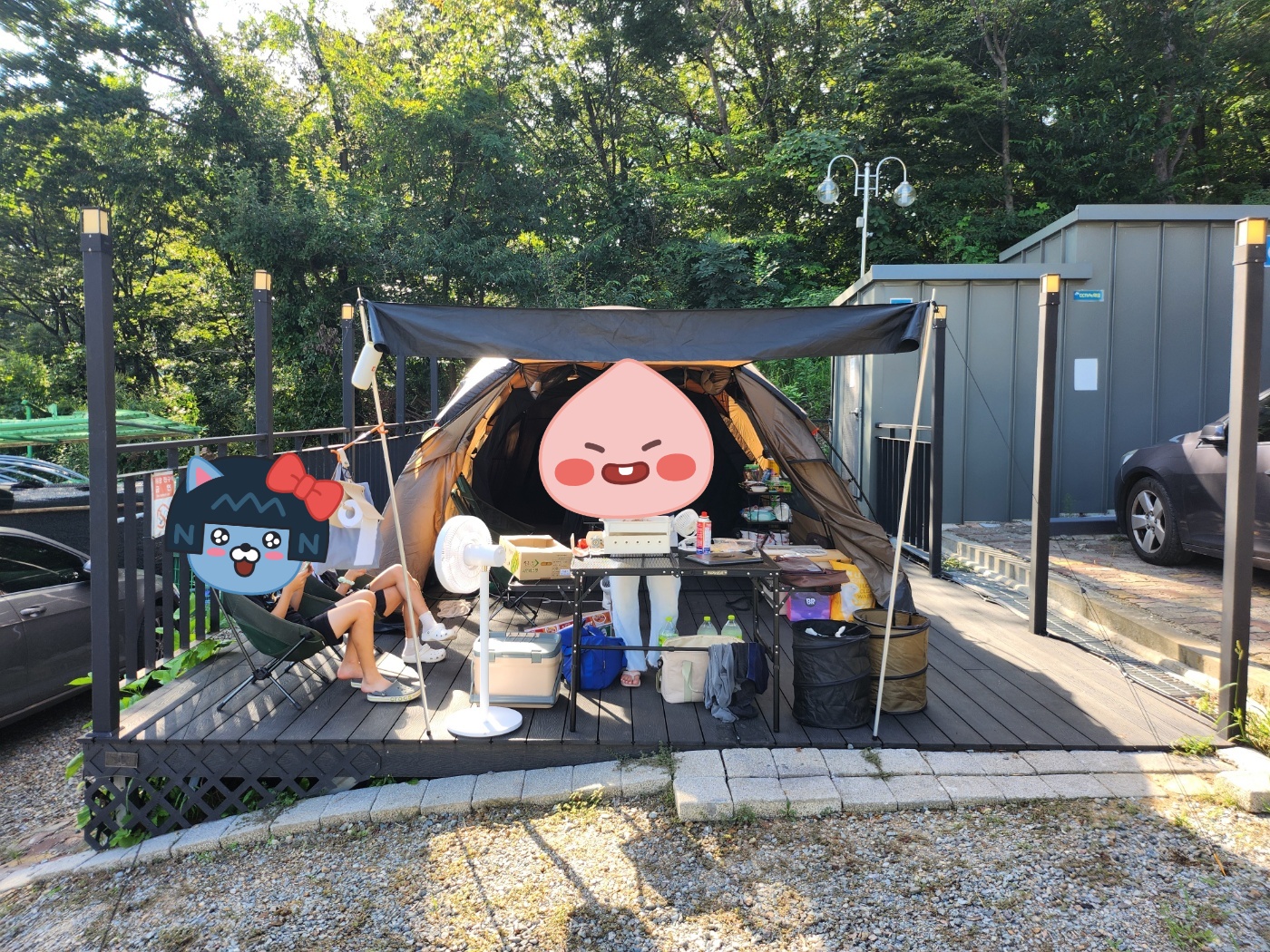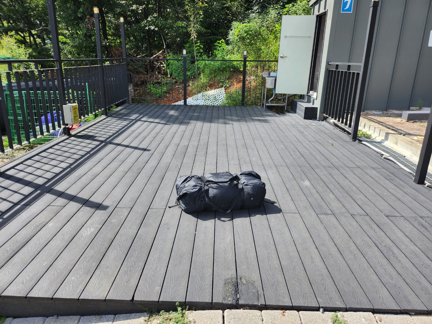 첫 방문으로 가장 안쪽으로 마주 보지 않으며, 사람이 지나다닐 일이 별로 없어 보이는 7번 데크를 선택하였고 텐트는 코베아 고스트플러스 기준 작은 데크 딱 맞는 사이즈이며, 개별 화장실과 개별 개수대는 아주 큰 장점으로 다가왔습니다.