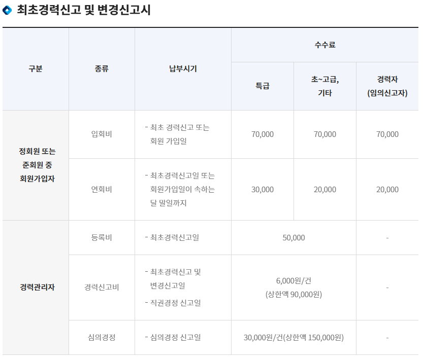 일회성비용 입회비를 제외하고 연회비 2~3만 원으로 공인된 기관에서 경력을 꾸준히 관리할 수 있으며