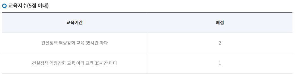 지정된 교육훈련 대행기간의 교육훈련을 이수한 경우 이수한 날부터 3년간 인정받을 수 있으며 그 기간 동안 최대 5점까지 합산되는 점수입니다.