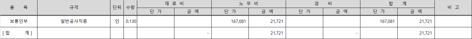위에서 산출된 건축물 현장정리 노무비를 대입하여 일위대가 표를 작성합니다.