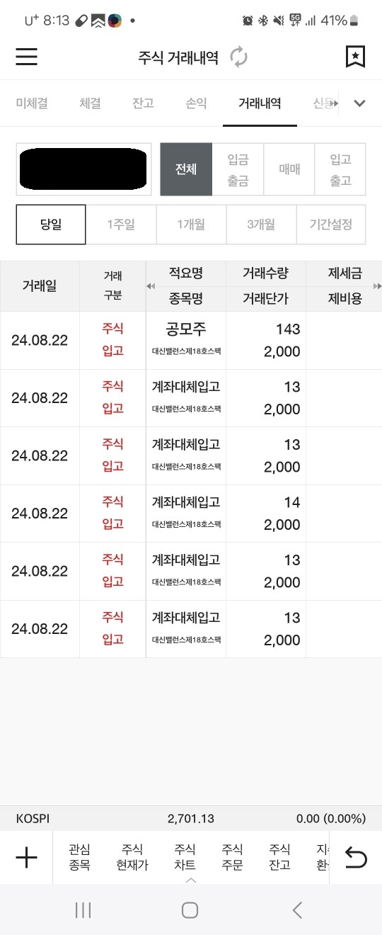 개인적으로 과거 종종 수익을 줬던 대신증권이어서 스펙에 참여해 봤으며 시초가 매도로 나쁘지 않은 결과라 생각됩니다.