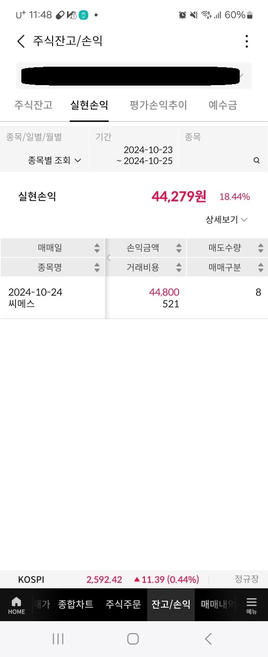삼성증권에서 진행한 씨메스 공모주 청약에 참여하여 32,279원의 수익 발생하였습니다.