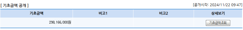 하단에 위치한 기초금액조회를 클릭하여 예비가격 기초금액 및 A금액을 확인하여 투찰금액을 계산합니다.