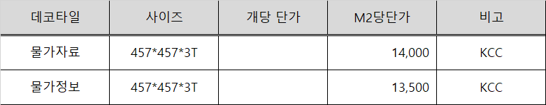 데코타일 재료비 산출 기준
