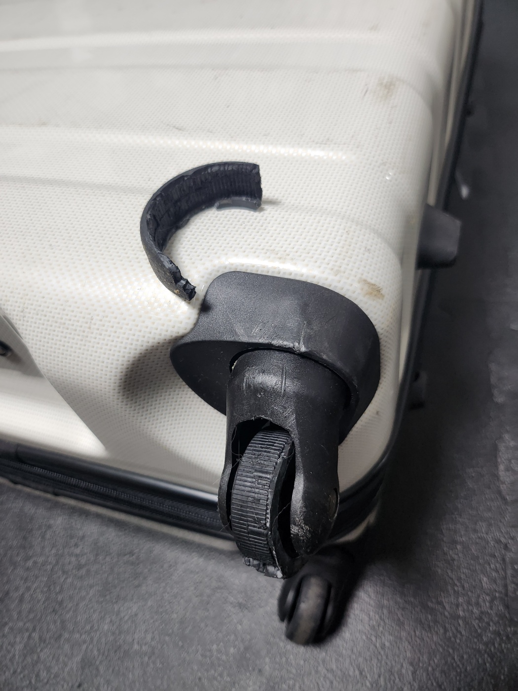 꽤 오랜 시간 버텨준 캐리어입니다. 처음 살 때만 해도 캐리어를 누가 흰색을 사냐며 구박을 받았었는데, 바퀴 고무가 저렇게 분해가 될 정도로 사용했습니다. 언젠간 좋은 거 하나 다시 사야지 하며 막연하게 생각하고 있었는데 이렇게 급하게 구매하게 될 줄은 몰랐습니다.
