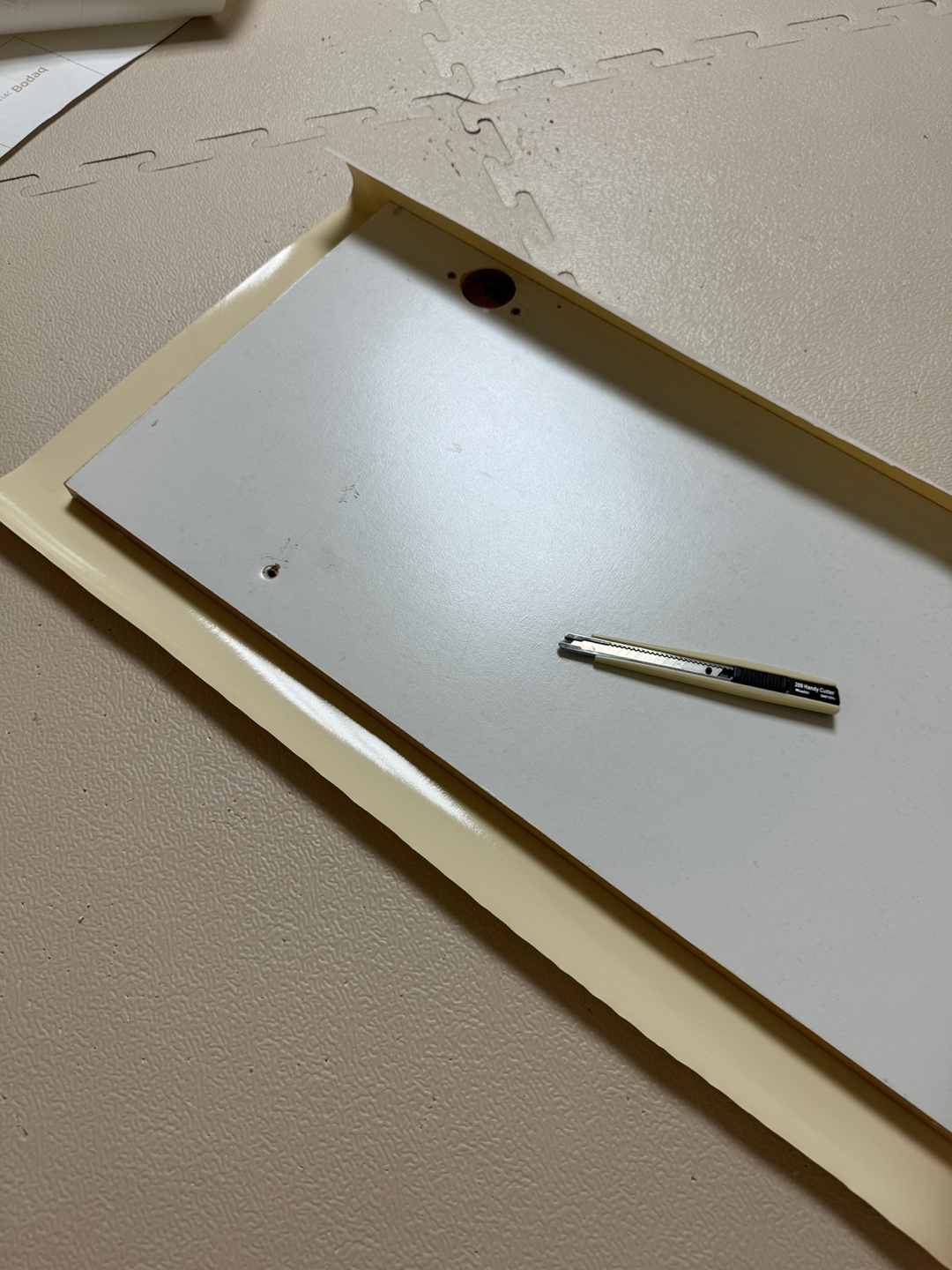 2. 시트지를 부착 후 모서리 부분을 겹치도록 잘라줍니다.
