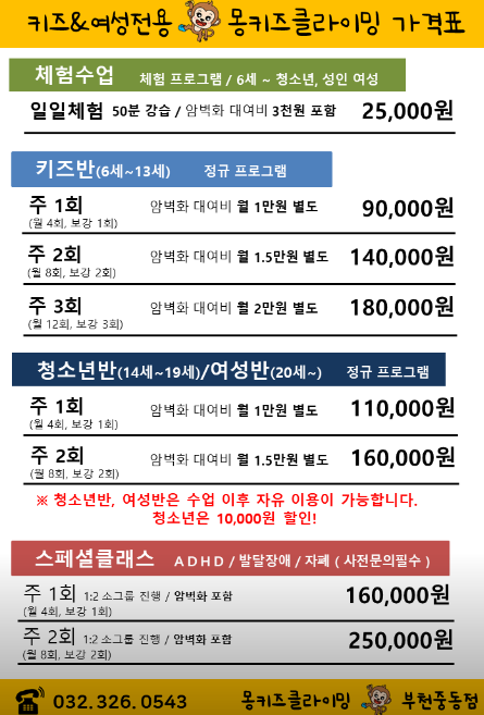 예약하고 10분 전 방문하니 앞타임의 정규 수업이 진행 중이었습니다. 일일 체험의 경우 가격표에서 볼 수 있듯이 1인당 25,000원으로 50분 수업을 받을 수 있습니다.