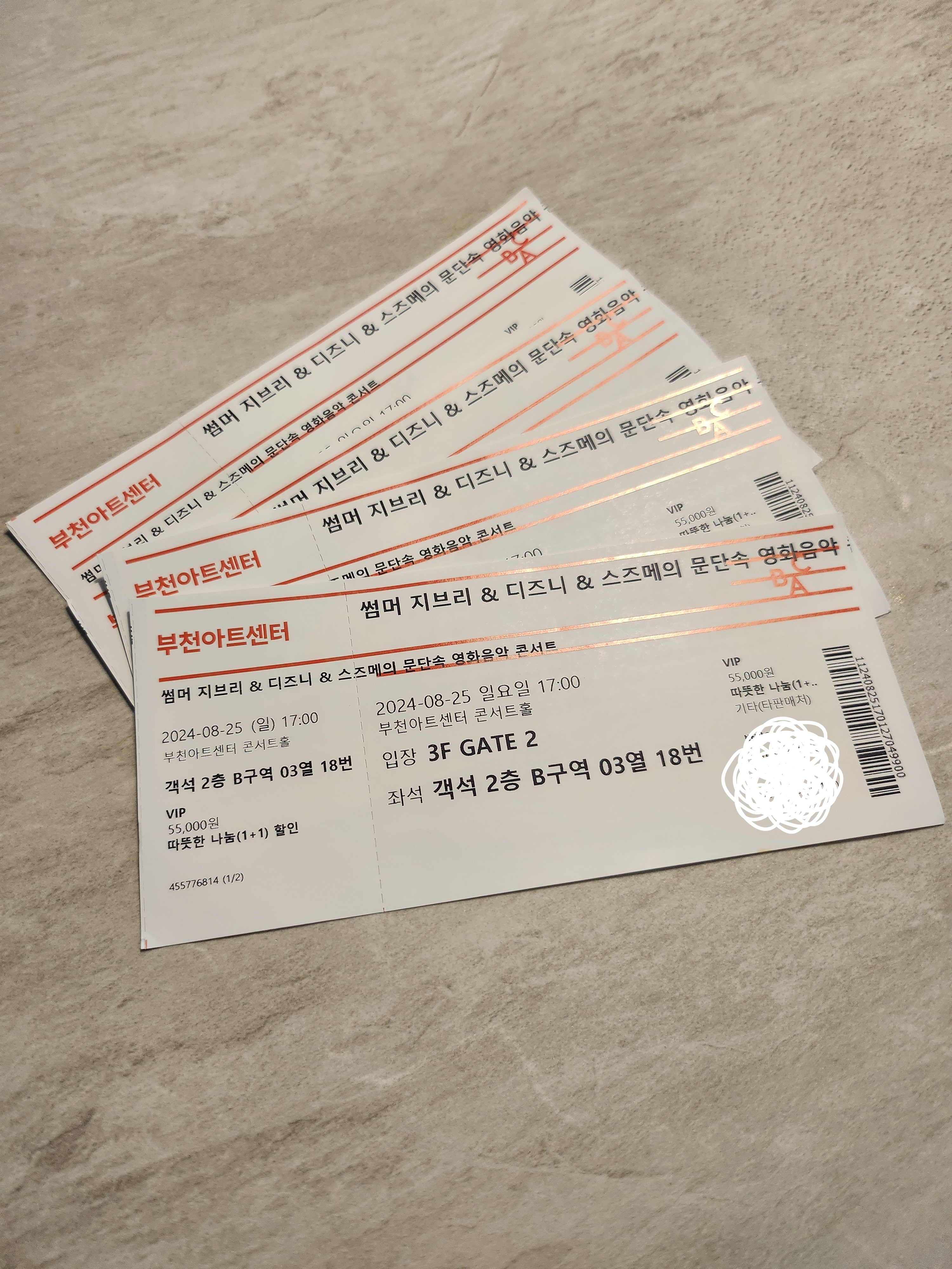 운이 좋게도 집 근처 부천아트센터 콘서트홀에서 서머 무비 콘서트가 있어서 편하게 보고 오게 되었습니다.