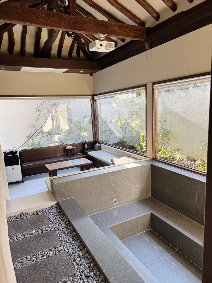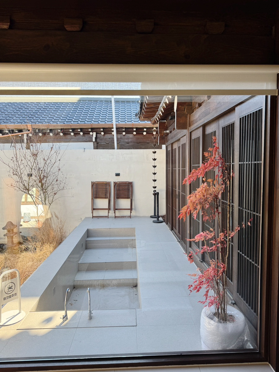 이번 여행 중 한옥숙소를 꼭 넣고 싶었는데, 제일 중요하게 생각한 포인트는 한옥을 바라보는 뷰보다, 한옥에서 바라보는 뷰를 중요하게 생각했습니다. 한옥에 앉아있는 시간이 더 많을 듯해서입니다:)