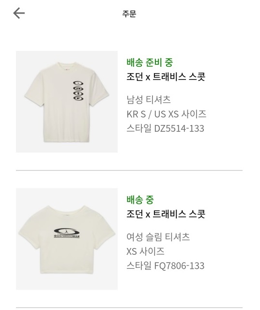 계정당 사이즈별 3 타입씩 응모했으니 총 15개 응모, 결과는 모두 꽝... 메일이 아닌 시간 맞춰 자동결제 문자가 오길 바랐었습니다. 아쉬운 대로 애들 티셔츠 2장 주문해 봅니다.