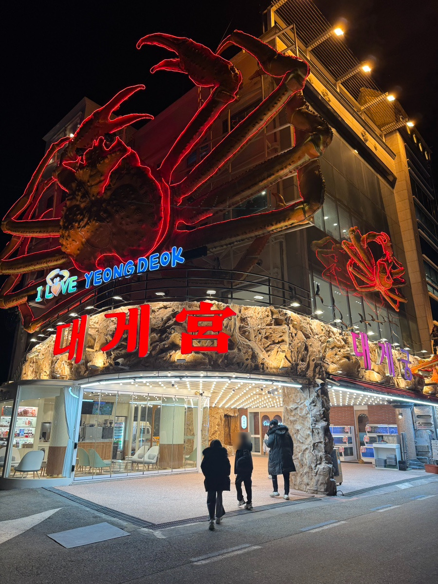 숙소에서 30분 정도 거리에 위치한 강구항 "영덕대게거리"입니다. 들어가는 입구에 누가 봐도 대게거리!!!