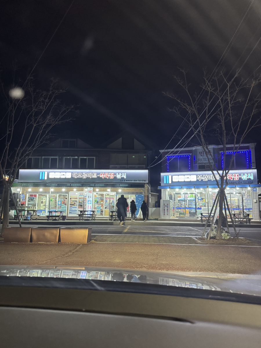 숙소 복귀하며, 편의점 들려서 간식거리 사갑니다.(숙소 바로 근처에는 편의점이 없습니다.)