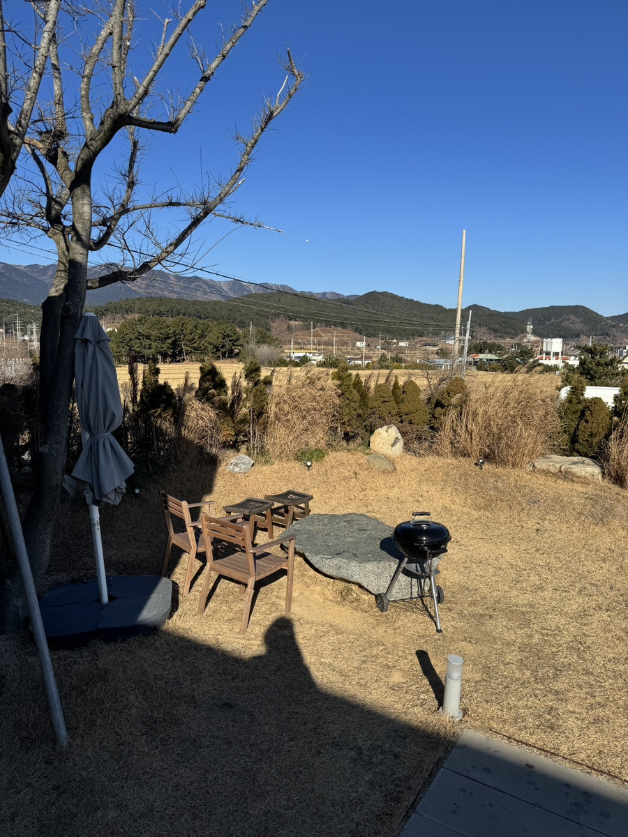 앞쪽 마당에서 고기를 구워 먹을 수 있으며, 날씨관계로 저희는 패스!!! 날 좋을 때 방문하면 꼭 이용할 듯합니다.!!