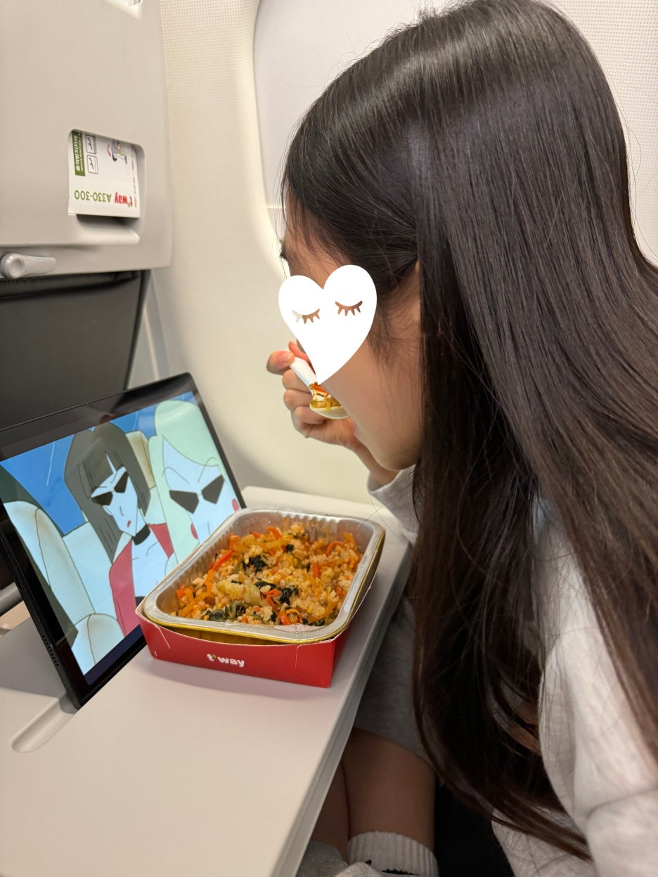 비행 시작 후 한 시간 지났을 때쯤 기내식이 나왔습니다. 불고기덮밥과 비빔밥!!