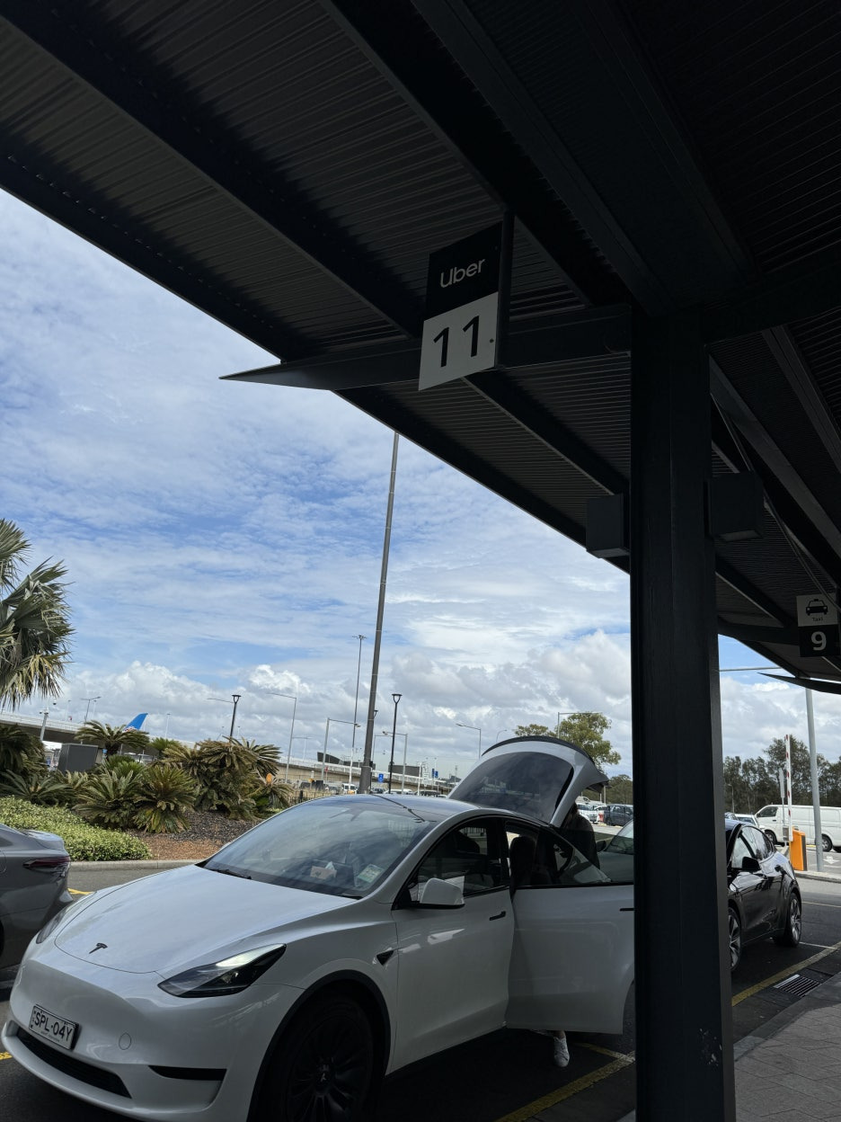 첫 번째 숙소가 타롱가동물원 안에 있어서 택시를 타고 이동하기로 했습니다. 공항을 나오면 표지판에 우버택시 타는 곳으로 표시가 되어 있으며, 한국에서 미리 우버택시 어플을 다운로드하여서 카드도 미리 등록해 두면 편하게 이용가능합니다. 어플로 택시를 부르면 몇 번 탑승장/차색상/차종류/차량번호가 나오며, 그 앞에서 타면 됩니다.