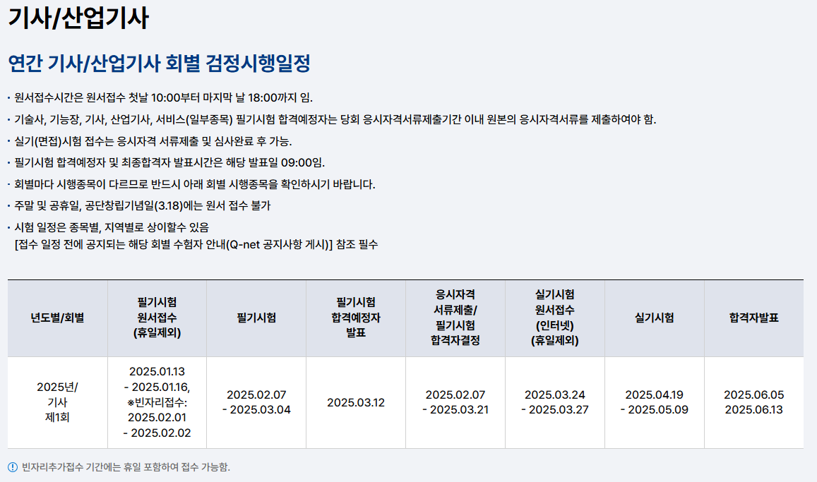 2024년이 지나가고, 2025년도 시험일정이 발표되었습니다.