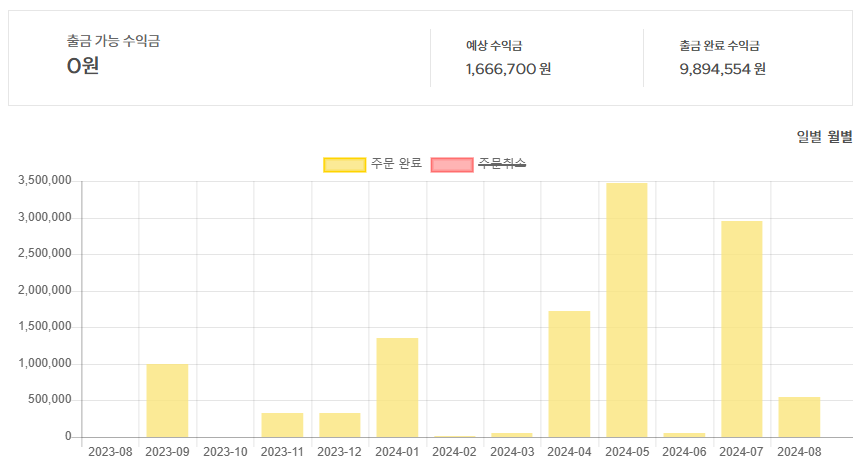 지인의 추천으로 23년도 8월 처음 알게 되었고 현재 1년 정도 지난 상태에서의 수익입니다.